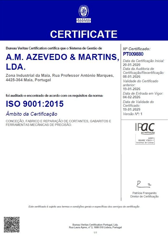 A. M, Azevedo & Martins Lda. com presença no Mercado Nacional desde 1990 está vocacionada para o fabrico de cortantes, gabarits e ferramentas de mecânica geral de precisão.